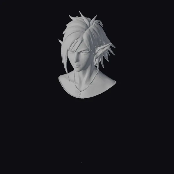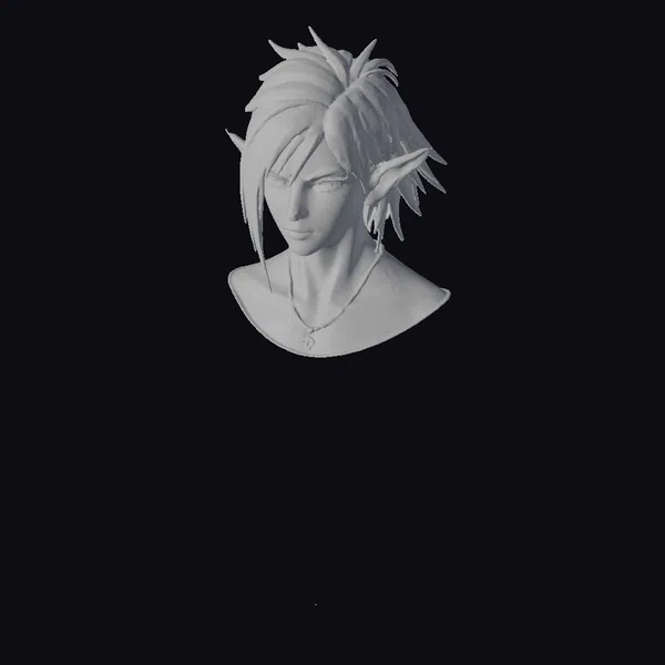 Crafted with meticulous attention to detail, this stylized elf bust presents a captivating portrait with a predominantly black and white palette, accented with dark, ornate elements. The elf’s facial features are finely rendered, with a focus on expressive eyes and intricate hair adorned with spikes, suggesting a blend of elegance and danger. The bust itself is designed to highlight the elf’s upper body and head, set against a clean, neutral background that emphasizes the model’s detailed textures and lighting. Ideal for use in games, animations, or as a unique decorative piece, this model brings a touch of fantasy and intrigue to any project.