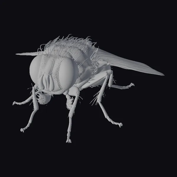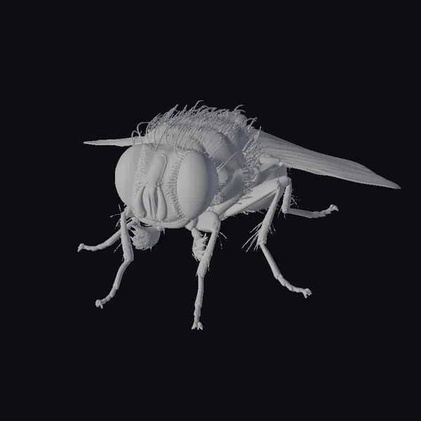 Perched on the cusp of movement, this emerald bottle fly appears poised to take flight at a moment’s notice. Its large, red eyes seem to gleam with a knowing intelligence, set against a backdrop of shimmering green that gradates across its body. The delicate wings, a blur of motion even in repose, suggest the rapid flutter of flight. The fly’s body, covered in fine hairs, blends seamlessly into the darker tones of its legs, which are tipped with tiny claws. This model’s level of detail makes it an excellent choice for projects requiring a lifelike insect, whether for animation, game design, or scientific illustration.