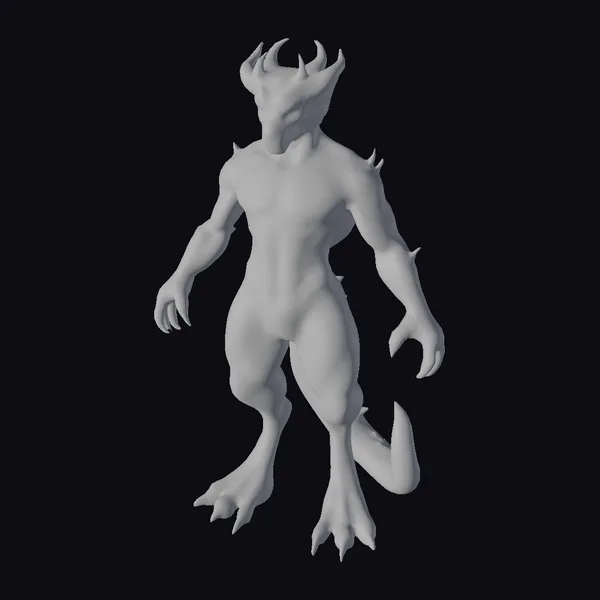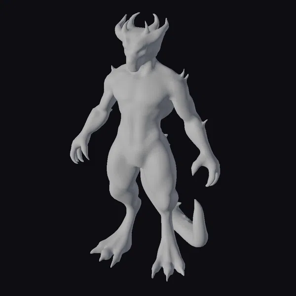Standing in a powerful stance, this mythic humanoid boasts a mesmerizing blend of emerald green and crimson scales that shimmer with subtle golden highlights, suggesting a creature of legend. Its dragon-like features include sharp horns, pointed ears, and a tail, all meticulously detailed to convey a sense of realism. The humanoid’s physique is muscular, with defined chest and limb muscles, ending in sharp, claw-like nails. The smooth yet armored skin texture adds depth to its appearance, making it a compelling addition to any fantasy setting. Ideal for use in games, 3D printing, VR/AR experiences, animation, and design projects, this model brings a touch of fantasy to life.