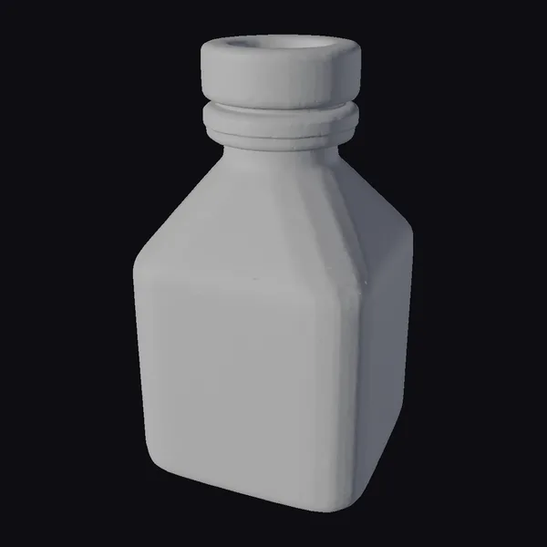 Positioned at a dynamic angle, the bottle’s intricate details leap into focus. The emerald cap, complete with ridged edges, sits atop a short neck, while the faceted glass body shimmers with a soft, teal hue. As light dances across its surface, the bottle appears to shift and glow, beckoning the viewer closer. Its proportions are perfectly suited for use in games, 3D print projects, VR/AR experiences, animations, or design visualizations. Whether used as a medical prop or decorative object, this enchanting bottle is sure to captivate.