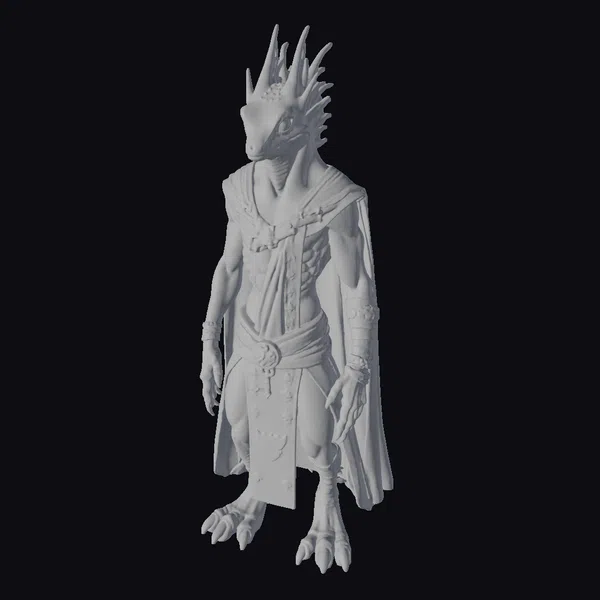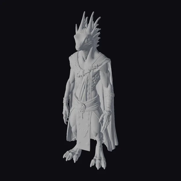Standing tall with a lean, muscular build, this emerald lizard humanoid commands attention with its radiant green scales that shimmer with a life of their own. The dark bronze patterns add a touch of sophistication and elegance, while the reptilian head with sharp, piercing eyes seems to gleam with an inner fire. Adorned with a flowing cape and intricate accessories, this creature appears ready to step into any fantasy world. Its detailed textures and lifelike pose make it perfect for use in games, 3D printing, VR/AR experiences, animation, and design projects.