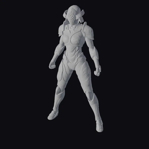 Detailed with precision, the emerald power suit stands in a powerful stance, fists clenched and legs apart, exuding confidence and readiness for battle. The armor’s emerald green hue is complemented by darker accents, suggesting a blend of organic and synthetic materials. The suit’s texture suggests a high-tech metallic composition, with subtle reflections that catch the light. This model is perfect for projects requiring a futuristic female warrior, whether for games, animation, print, VR/AR experiences, or design concepts. Its unique design and vibrant color make it a standout addition to any sci-fi themed project.