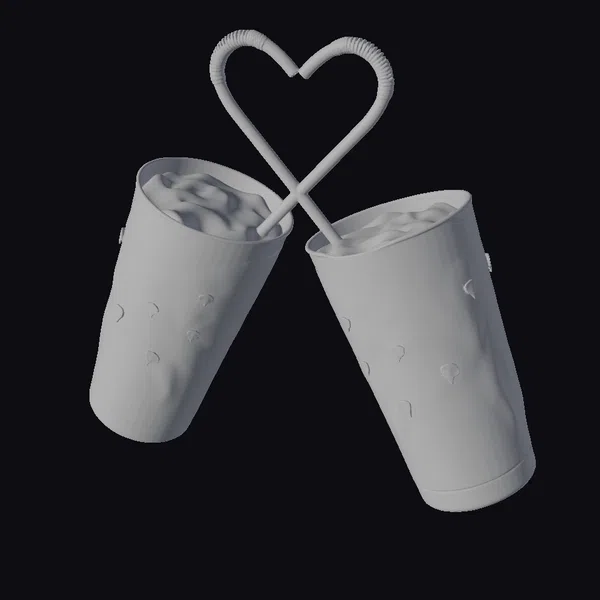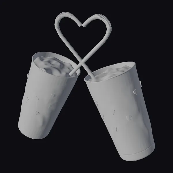 Detailed with precision, these stylized espresso cups are filled to the brim with a rich, creamy beverage, topped with a mesmerizing swirl of chocolate syrup and sprinkled with pastel-colored candy pieces. The heart-shaped straw adds a playful touch, making these cups perfect for 3D rendering in games, animations, or designs where a touch of whimsy is desired. The cups’ vibrant colors and delightful details make them an eye-catching addition to any scene.