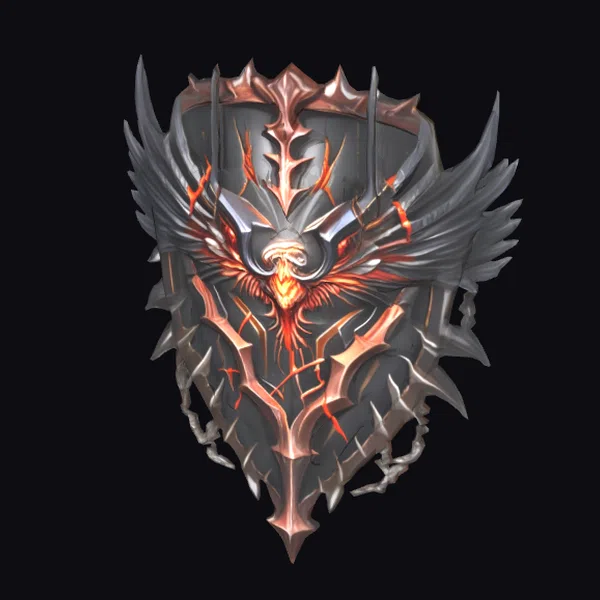 The Eternal Phoenix Crest presents a striking visual, with a predominantly dark, metallic shield serving as the base for an intricately designed phoenix emblem. The phoenix itself appears to be rising from the ashes, its body a swirling vortex of orange and yellow hues that suggest intense heat and fiery energy. Cracked, orange lines radiate from the phoenix, adding a dynamic sense of movement and power to the design. The shield’s surface is adorned with sharp, jagged edges and spikes, contributing to its imposing appearance. Ideal for use in games, 3D printing, VR/AR experiences, animation, and design projects, this model brings a touch of mythical strength and resilience. Its detailed textures and lighting effects make it suitable for high-quality visuals and immersive environments.