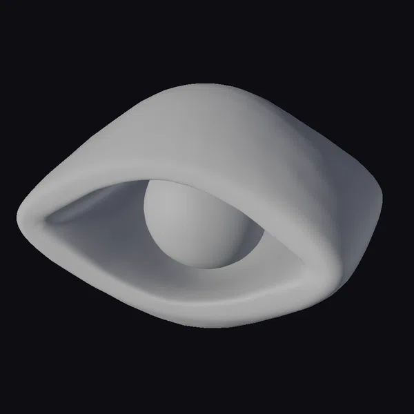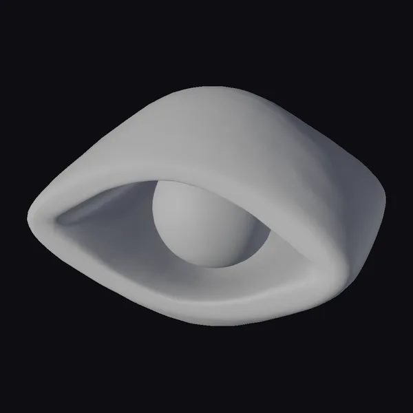 Positioned in a dynamic pose, this eye-shaped silver jewelry showcases a highly detailed design, with a smooth texture that catches the light. The black and white color scheme adds a touch of sophistication, while the intricate patterns and details make it a standout piece. The eye model features a realistic iris and pupil, surrounded by a stylized eyelid with a decorative border. This jewelry piece is perfect for those who appreciate unique accessories, and its detailed design makes it suitable for various applications, including 3D printing, animation, and game development.