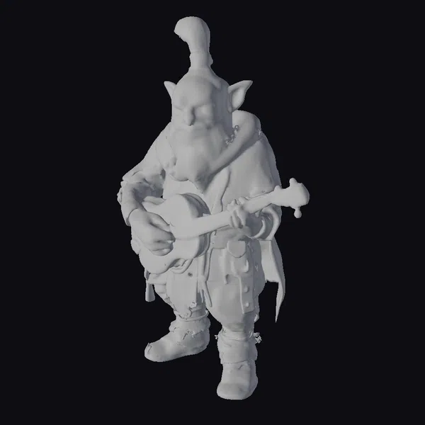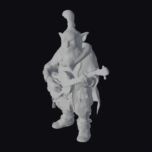 Standing with a slight lean, the troll’s robust figure is draped in a mix of gray and brown, suggesting a life spent in the shadows of caves. His facial features, marked by a pronounced beard and pointed ears, exude a sense of otherworldliness. The lute, cradled in his hands, adds a touch of serenity to his otherwise formidable appearance. The intricate details, from the texture of his skin to the strings of the lute, make this model a compelling addition to any fantasy setting. Ideal for projects requiring a character that blends music with mythology, such as animations, games, or conceptual art.