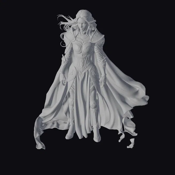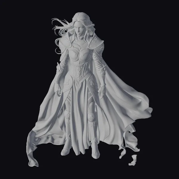 Rendered in exquisite detail, this female knight boasts a commanding presence with her intricately designed red and silver armor, complete with a sweeping red cape that flows dynamically behind her. Her long, blonde hair cascades down her back as she gazes intensely downwards, exuding an aura of fearlessness and determination. The armor’s design is a testament to medieval fantasy aesthetics, with silver accents that add a touch of sophistication to the overall look. This model is perfect for projects that require a heroic, fantasy character, such as games, animations, or architectural visualizations.