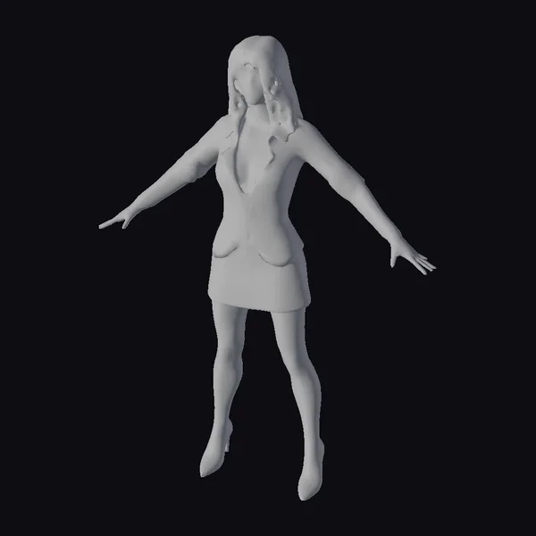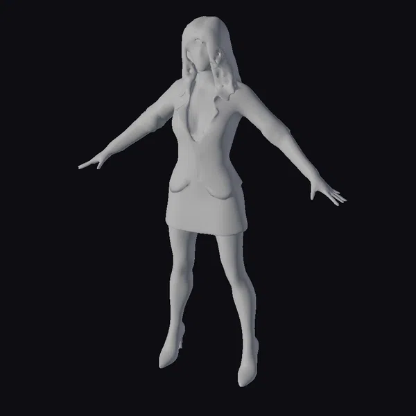 Detailed visual breakdown reveals a poised female musician with a charming face, accentuated by her bright eyes and subtle smile. Her toned skin and athletic build are showcased in a sleek black skirt and jacket ensemble. Long curly brown hair cascades down her back, adding a touch of elegance. This 3D model is perfect for games, animation, and design projects requiring a strong, stylish character. Bring your creative vision to life with this versatile model.