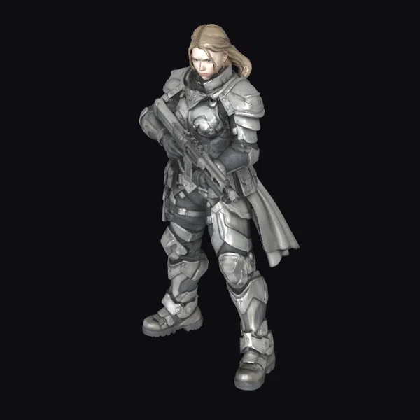 The Model “Female Space Marine Soldier” is also available upon request in many other 3D formats, such as 3MF, BLEND, FBX, OBJ, USDZ and others, making it easy to integrate into your project.
