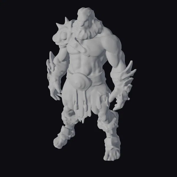 Standing with a powerful stance, this feral superhero exudes an aura of raw strength and resilience. His armor, a mix of dark, battle-worn metal and organic material, features sharp spikes and plates that seem to have been hammered into place. The surface of his skin is a canvas of intricate tattoos, weaving a narrative of his storied past. Weathered and worn, his physique speaks to a life of combat and survival. The character’s intense gaze, directed downwards, suggests a moment of contemplation before the storm of battle. This model is perfect for projects requiring a strong, stylized character with a rich backstory, suitable for games, animation, and design projects.