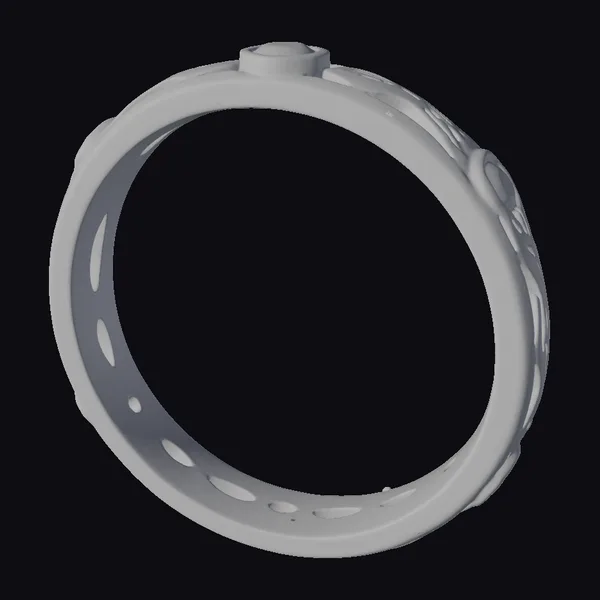 Positioned in a dynamic angle, the filigree sapphire band reveals its meticulously detailed design. The metal band, with its subtle sheen, appears almost lifelike, thanks to the high-quality textures that dance across its surface. Small, round blue gemstones are embedded within the filigree pattern, adding a pop of color and sophistication. The ring’s interior is equally detailed, with a smooth, rounded finish that suggests a comfortable fit. This model is perfect for enhancing games, 3D environments, or animations with a touch of realism and luxury. Designers and artists can leverage its intricate details for projects requiring authentic jewelry representations, from high-end fashion designs to immersive virtual experiences.