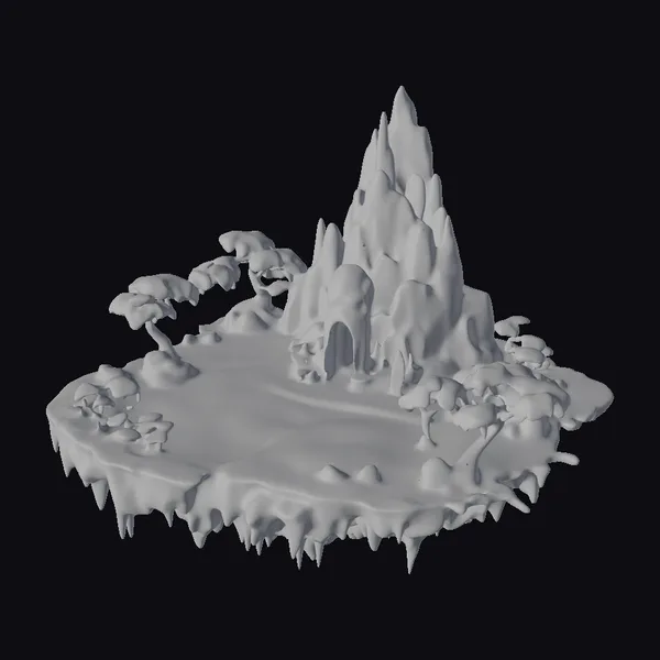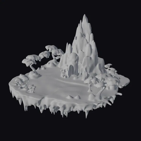 Perched precariously in the void, this colossal red rock island appears to defy gravity, its rugged surface etched with deep crevices and jagged outcroppings. The dominant spire rises from the center, its peak lost in the darkness, while a solitary cave entrance gapes like a mouth at its base. Twisted, tortured trees cling to the island’s periphery, their branches grasping towards the void like withered fingers. The island’s edge drops away precipitously, a sheer cliff face that plunges into the unknown. Crafted with meticulous attention to detail, this ultra-realistic model invites you to explore the dark, foreboding atmosphere of a hellish, abyss-like world. Ideal for use in games, 3D printing, VR/AR experiences, animation, and design projects seeking a hauntingly beautiful, otherworldly environment.