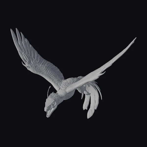 In a stunning display of flight, this creature stretches its impressive wings, revealing a kaleidoscope of colors that dance across its feathers. The stylized model boasts intricate details, from the texture of its plumage to the fierce gaze in its eyes. The pose captures a moment of raw power and beauty, as if frozen in mid-air. This model is perfect for projects that require a touch of fantasy and prehistoric wonder, such as animations, games, or architectural visualizations. Its unique blend of realism and stylization makes it a versatile asset for any creative project.