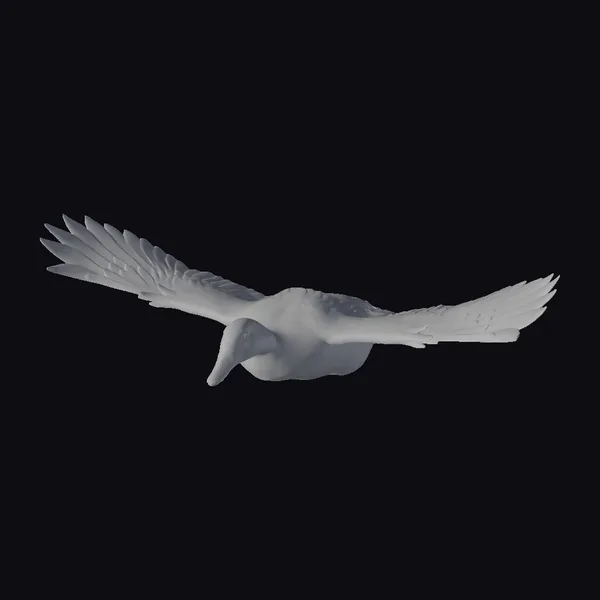 In a stunning display of dynamic movement, the mallard duck is captured mid-flight, its wings spread wide and feathers ruffled by the wind. The model’s intricate details, from the glossy sheen on its head to the soft, muted tones of its body feathers, evoke a sense of realism. The duck’s pose, with its head angled downwards and beak pointed towards the ground, suggests a moment of swift descent or agile maneuvering. This 3D model is perfect for projects requiring a realistic and engaging depiction of wildlife, suitable for use in animations, games, virtual reality experiences, and detailed illustrations.