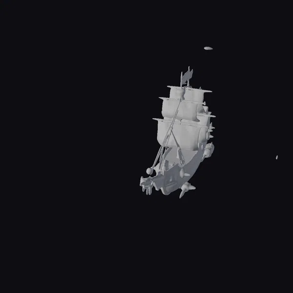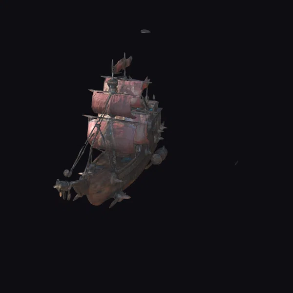 In a daring pose, the pirate ship appears to be mid-ascent, its hull and sails bathed in a warm, golden light that accentuates the intricate textures and details. The ship’s wooden body, adorned with metallic spikes and fixtures, seems to be a testament to the ingenuity of its creators. The red sails, billowing in the wind, add a pop of color against the weathered wood and metal. As the ship flies through the air, its jet propulsion system blasts off into the distance, leaving a trail of excitement and wonder. Ideal for use in games, animations, or 3D printing, this model is sure to captivate audiences with its unique blend of fantasy and science fiction elements.