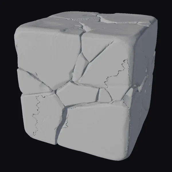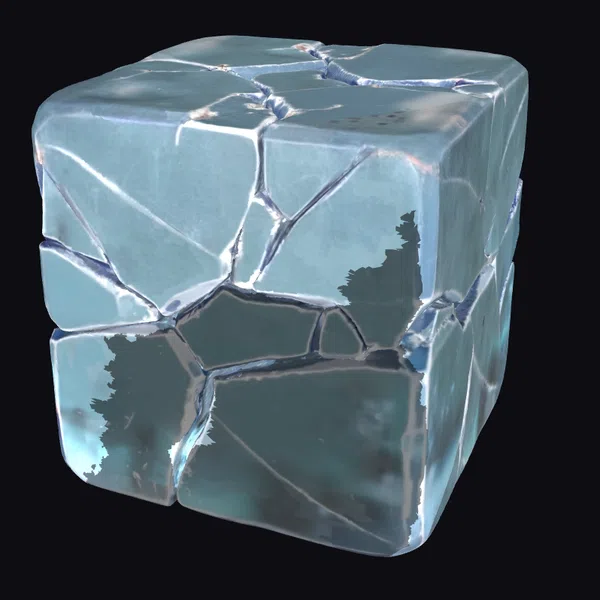 Positioned at a dynamic angle, the fractured ice cube showcases its intricate network of cracks and fissures, each one a testament to the transient nature of solid water. The surface texture oscillates between smooth, glassy areas and jagged, shattered sections, inviting the viewer to ponder the moment just before it fell apart. The model boasts a highly detailed, realistic appearance, with light reflections and refractions adding depth to its frozen, azure form. Ideal for use in animations, 3D renderings, or as a design element in games and simulations, this model brings a touch of ephemeral beauty to any scene.