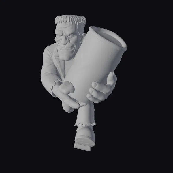 In a dynamic pose, Frankenstein’s monster charges forward with a menacing scowl, his green skin and sharp features accentuated by a brown suit jacket and pants. The monster’s muscular arms grasp a gigantic red can of cranberry sauce, complete with a label featuring cranberries and a silver lid. The model’s cartoonish style brings a playful twist to the classic monster, perfect for adding a humorous touch to animations, games, or designs. The detailed textures and lighting create a vivid, eye-catching effect, making this model ideal for projects that require a whimsical, attention-grabbing character.