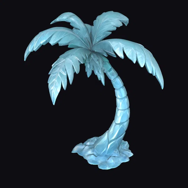 Perched on a base of frosty debris, the curved trunk of this palm tree rises, supporting a crown of vibrant, icy blue leaves that shimmer with a frosty sheen. The detailed texture of the trunk and the delicate shape of the leaves are preserved, giving the model a realistic yet fantastical feel. The icy coloration and glacial details make it a perfect addition to winter scenes, tropical paradoxes, or fantasy landscapes. Designers and artists can integrate this model into projects requiring a touch of magic or a clash of climates, such as animations, games, or architectural visualizations.