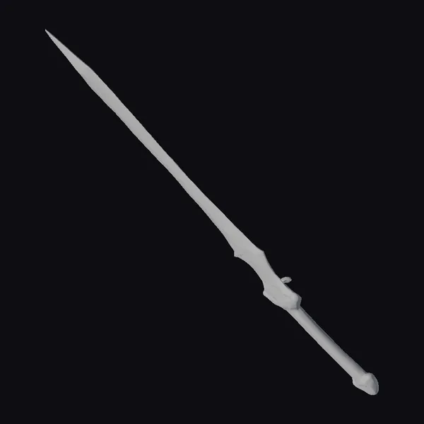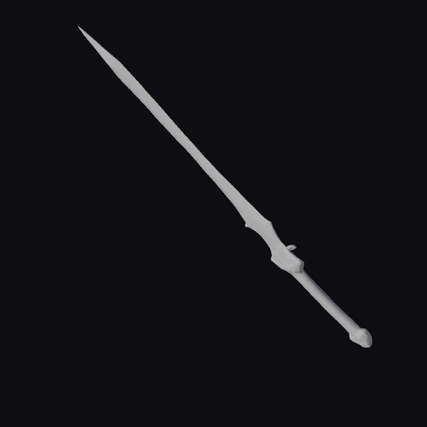 This striking sword boasts a blade that shimmers with a gradient of blue hues, reminiscent of a void or crystal formation. The blade’s edge is razor-sharp, tapering to a fine point that seems to pierce the air. A series of runes etched into the blade’s surface appear to glow with an ethereal light, adding an air of mysticism to the sword’s design. The hilt, wrapped in a dark, almost organic material, provides a striking contrast to the blade’s luminous color. Metallic accents secure the hilt in place, lending a sense of rugged durability to the sword’s overall aesthetic. Whether used in a game, animation, or VR/AR experience, this sword is sure to leave a lasting impression. Its unique blend of sci-fi and fantasy elements makes it an ideal prop for designers and creators looking to add a touch of the extraordinary to their work.