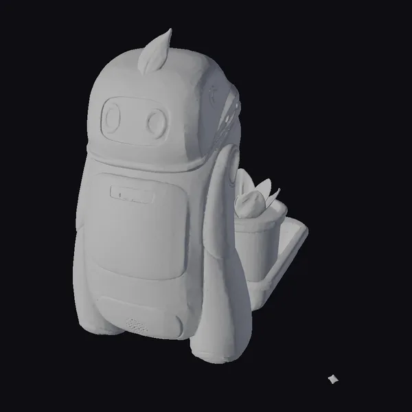 Positioned with a gentle tilt, the robot’s rounded form exudes approachability. Its white and mint green hues evoke a sense of freshness and vitality. A small, vibrant leaf adorns its head, while its large, expressive eyes seem to sparkle with a warm, friendly light. A built-in planter on its side securely holds a small succulent, highlighting its purpose as a guardian of plant life. The robot’s design masterfully blends functionality with aesthetic appeal, making it a captivating addition to any digital environment. Whether you’re creating a futuristic garden scene, a sci-fi animation, or a virtual reality experience, this stylized robot model brings a touch of whimsy and innovation. Its detailed textures and lifelike pose ensure seamless integration into various projects, from games and animations to architectural visualizations and product designs.