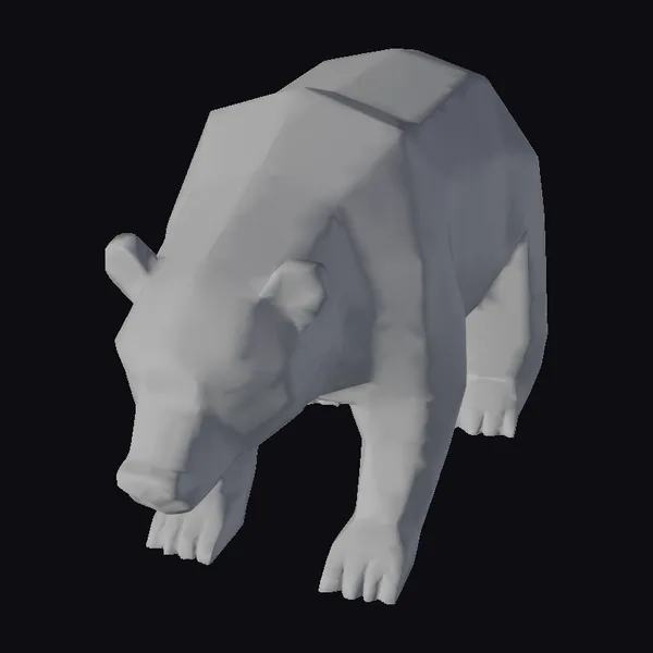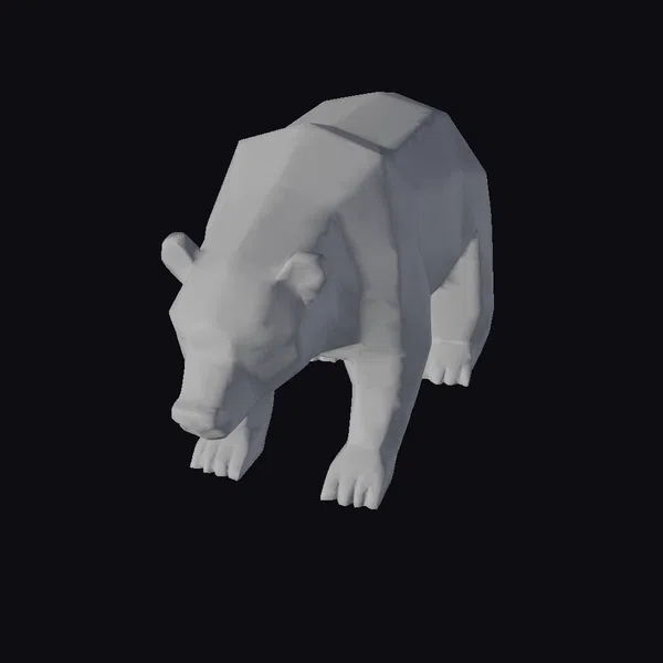 Rendered in a striking low-poly style, this brown bear 3D model showcases a perfect blend of geometric simplicity and organic form. The bear’s crouched stance, with its paws splayed wide and eyes narrowed, captures a moment of tense readiness. The model’s texture is smooth, with a warm brown color that evokes a sense of rugged wilderness. The bear’s features are abstracted, with clean lines and flat surfaces that give it a stylized appearance. This model is ideal for use in games, animations, or 3D renderings where a stylized yet powerful animal presence is needed. Its geometric nature also makes it suitable for architectural visualizations, graphic designs, or as a decorative piece in its own right.