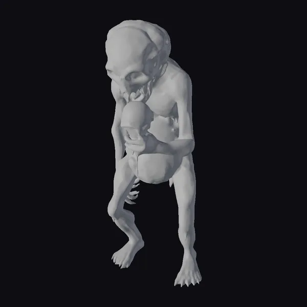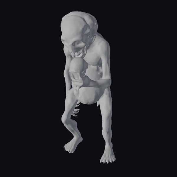In a twisted scene of horror and delight, a ghoulish creature is captured in a moment of indulgence, its long arms and legs twisted in a hunched position as it savors a melting ice cream cone. The model’s realistic texture and lighting bring to life the eerie atmosphere, with the ghoul’s green skin and sharp teeth standing out against the plain background. The ice cream cone, with its melting scoop, adds a touch of humor to the otherwise dark scene. This 3D model would be perfect for adding a unique touch to games, animations, or designs that require a blend of horror and whimsy.