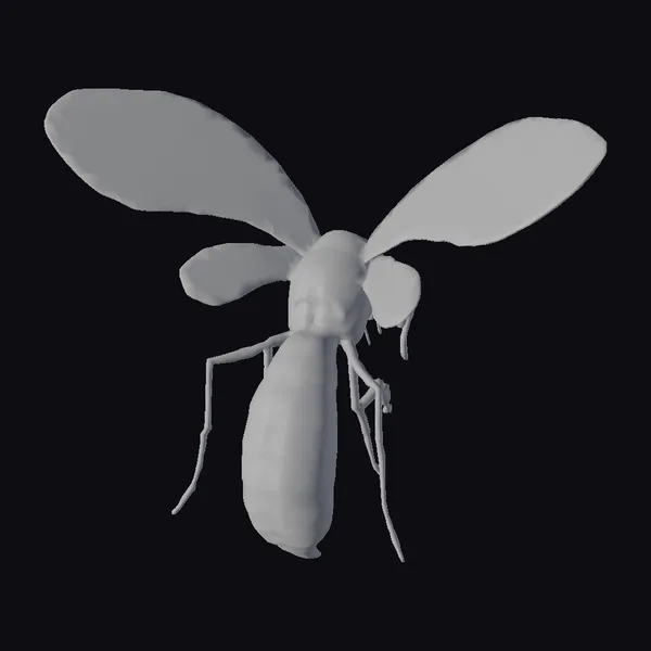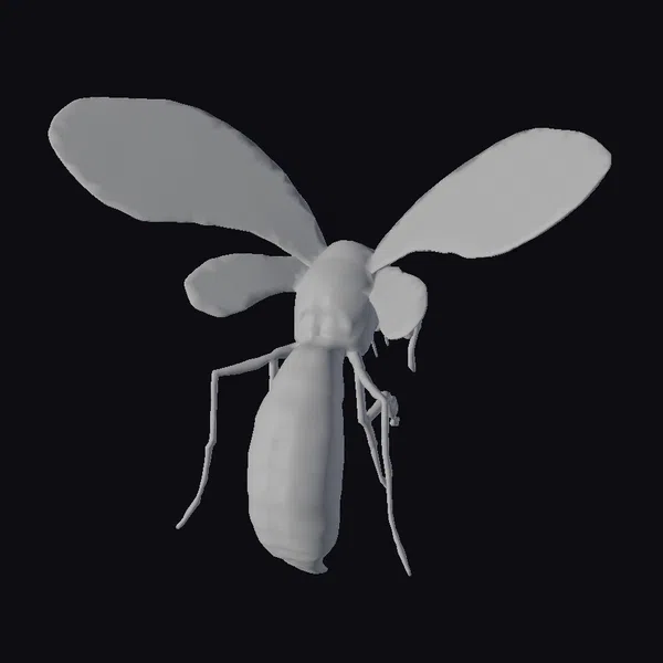 Perched eerily in mid-air, this colossal mosquito exudes an aura of foreboding. Its body is a rich, dark red hue, with subtle shading that suggests a sense of depth and dimensionality. The wings, a delicate latticework of light green, appear almost ethereal, as if they might vanish into thin air at any moment. The insect’s long, spindly legs are splayed out to the sides, giving it a menacing, predatory air. As the light catches its body, the mosquito’s proboscis seems to glint with a malevolent sheen. This 3D model would be perfect for use in games, animations, or other projects where a fantastical, eerie atmosphere is desired.