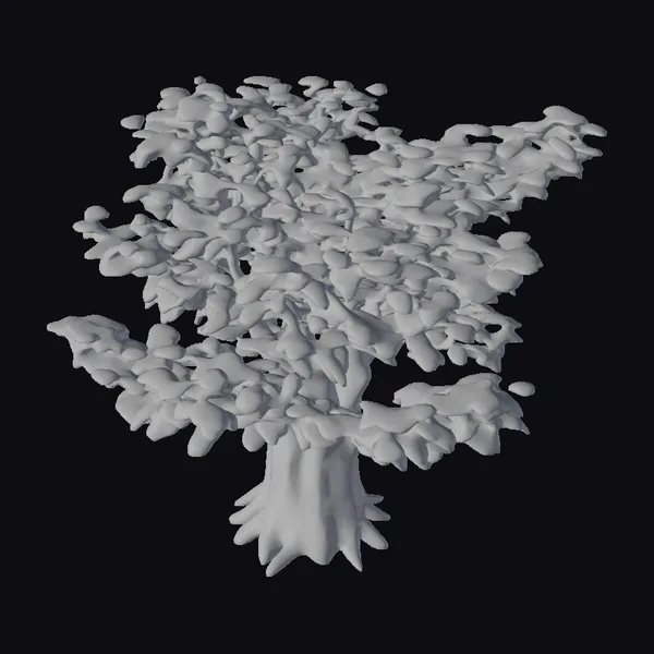 The tree’s white trunk rises robustly, its surface etched with the lines of age and wisdom, branching out into a sprawling canopy of deep crimson leaves. Each leaf appears delicate yet resilient, a testament to the tree’s fantastical nature. The contrast between the tranquil white bark and the fiery red foliage creates a striking visual effect, making this tree a focal point in any scene. Ideal for use in games, animation, or architectural visualizations, this model brings a touch of fantasy and wonder to any project.