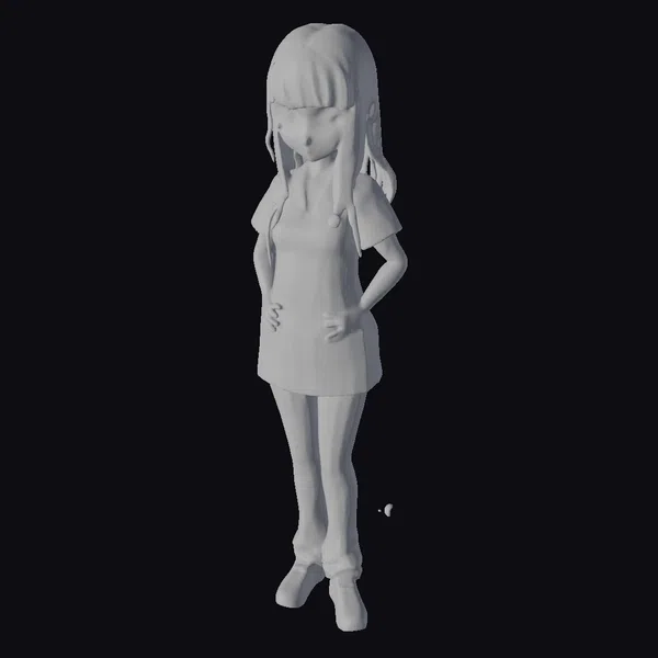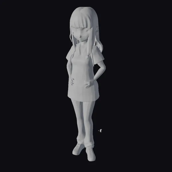 Depicted with meticulous attention to detail, this anime-style girl stands with her hands casually placed behind her back, showcasing a relaxed yet endearing posture. Her long, straight hair falls just above her shoulders, framing her face with bangs that add to her charm. The white uniform, complete with short sleeves and matching pants, highlights her youthful appearance. The texture and lighting of the model accentuate its high-definition quality, making it suitable for various applications such as games, 3D printing, VR/AR experiences, animation, and design projects. The model’s kind face and serene expression invite users to explore a range of creative possibilities.