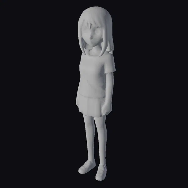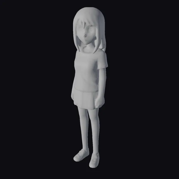 Standing with a gentle smile, this cartoon girl model showcases intricate details such as her dark hair with subtle brown highlights, her bright expressive eyes, and her vibrant yellow short-sleeved shirt that contrasts beautifully with her blue skirt. Her brown shoes and socks add a realistic touch to her otherwise stylized appearance. The model is highly detailed, making it perfect for various applications such as animation, game development, and virtual reality experiences. The high-quality textures and realistic proportions ensure that the model can be used in both close-up and distant scenes.