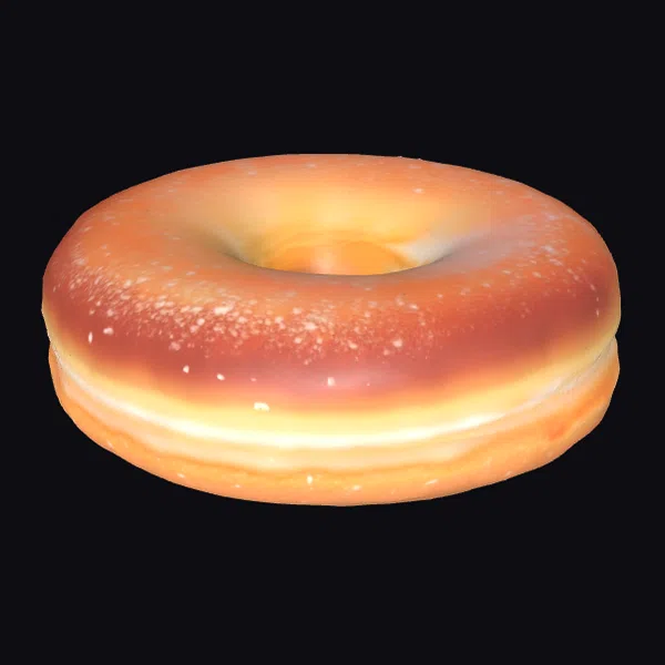 Crafted with meticulous attention to detail, this 3D model of a glazed donut with sprinkles presents a visually appealing treat. The donut’s pose showcases its rounded shape, with the glaze gradating from a deep golden brown at the top to a lighter shade towards the bottom. Tiny white sprinkles are scattered across the surface, adding a whimsical element. The model’s textures and lighting create a realistic appearance, making it suitable for various applications such as game development, 3D printing, virtual reality experiences, animations, and design projects. Whether you’re creating a bakery scene or a digital menu, this donut model is sure to add a touch of authenticity.