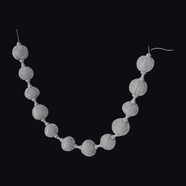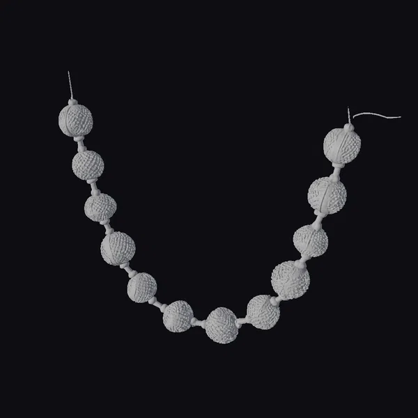 Crafted with meticulous attention to detail, this 3D model captures the essence of a chandelier necklace, featuring a series of large, spherical, glittering pearls that appear to float in mid-air, connected by delicate brass links. The pearls exhibit a textured surface that catches the light, adding to their luxurious appearance. The model showcases a high level of detail, from the subtle sheen on the pearls to the precise craftsmanship of the metalwork. Ideal for use in high-end jewelry design, interior decor projects, or as a statement piece in 3D animation and rendering, this model brings a touch of elegance and sophistication to any scene. Its versatility makes it suitable for applications in jewelry design, interior design, and 3D modeling projects.