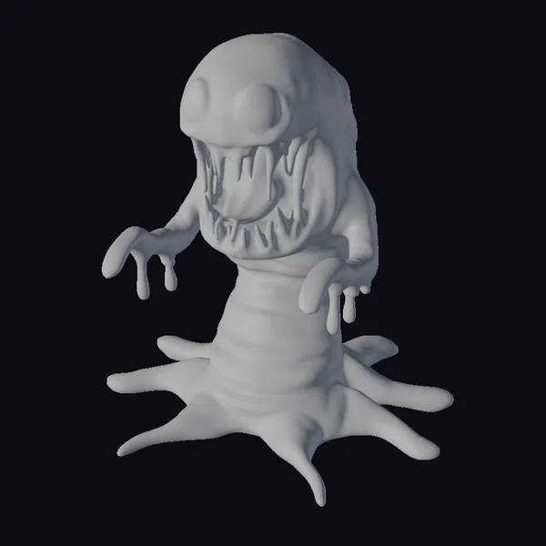 Floating dynamically against a stark white background, this glowing aquatic creature commands attention with its grotesque features. Its body, a mesmerizing blend of blue and purple hues, appears slimy and threatening. The creature’s sharp teeth and glowing eyes add to its menacing demeanor, making it a perfect fit for horror-themed projects or fantasy settings. The stylized approach to its design gives it a cartoonish yet unsettling presence. Use it in games, animations, or 3D prints to add an element of fear or surprise.
