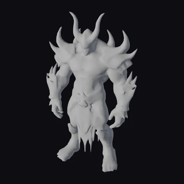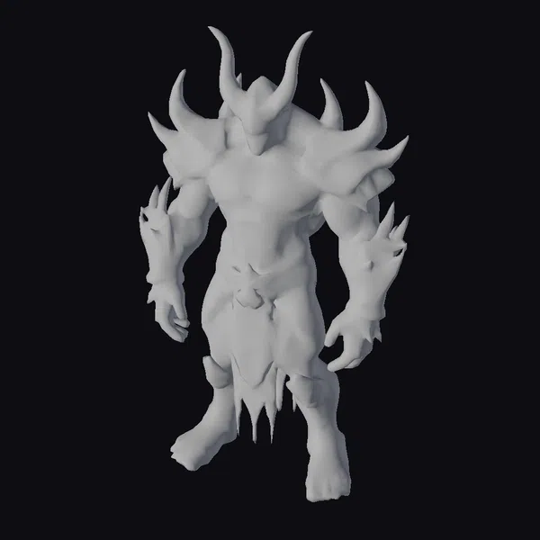 This imposing figure stands with a confident stance, its muscular physique evident even under the armored plating that covers its body. The armor, a deep blue-black hue, is accentuated by glowing cyan highlights that suggest an inner light or energy. A sharp horned helmet adds to its intimidating appearance, while the armored limbs, complete with blade-like protrusions, hint at its readiness for battle. The glowing cyan eyes are striking, seeming to gleam with an inner fire. Such a detailed model would be perfect for use in games, 3D printing, VR/AR experiences, animation projects, or design visualizations, offering a ready-made icon of power and mystery.