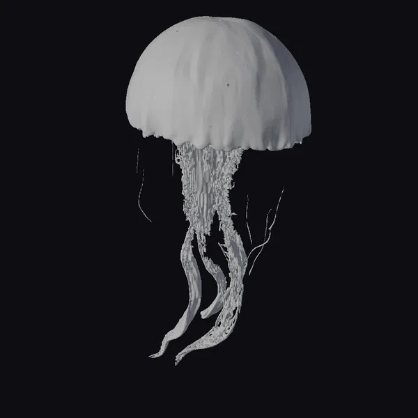 Suspended in a state of weightlessness, the jellyfish’s umbrella-like body is a marvel of intricate detail. The translucent material allows light to pass through, casting a soft glow on surrounding surfaces. Eight delicate, almost transparent tentacles trail behind, their texture evoking a sense of fragility and vulnerability. The model’s realistic proportions and anatomy make it perfect for use in marine biology simulations, oceanographic visualizations, or as a decorative piece in a 3D environment. Its serene presence can add a touch of wonder to any scene, from educational materials to artistic projects.