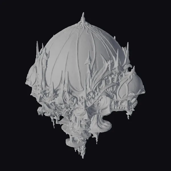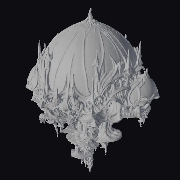 The citadel’s base appears to be crafted from a substance that resembles molten stone, with tendrils of the same material stretching upwards to support the dome. The dome itself is a mesmerizing blue, with white lines that evoke the appearance of glowing veins. As the eye travels upwards, it is drawn to the delicate spires that punctuate the citadel’s surface, adding a sense of drama and tension to the overall design. This 3D model would be perfect for use in games, animation, or architectural visualization, where a touch of fantasy and wonder is needed. Its unique blend of organic and crystalline elements makes it a versatile asset for a wide range of projects.