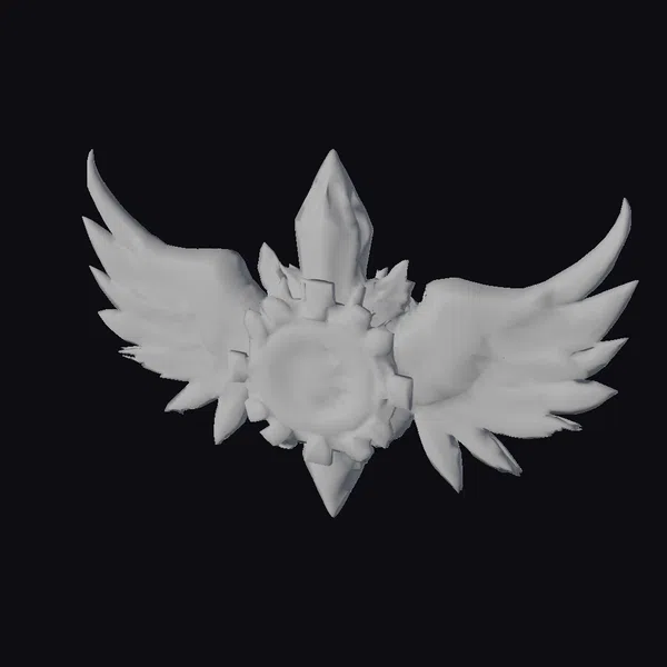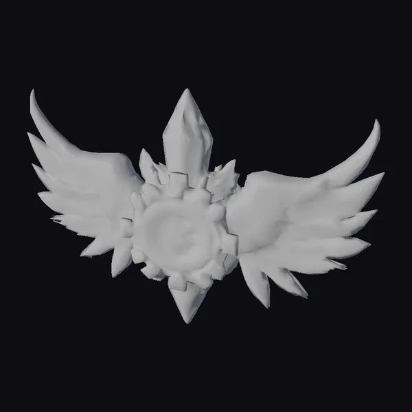 Detailed with precision, this emblem showcases a mesmerizing crystal core that pulsates with a soft, ethereal glow. The core is surrounded by intricately designed gear-like wings, which appear to be in motion, as if about to take flight. Flecks of fire sparks dance across the surface, adding a dynamic touch to the overall design. Glowing circuitry patterns weave through the metal components, suggesting a fusion of ancient mysticism and advanced technology. The emblem’s complex structure and vibrant colors make it an eye-catching piece, suitable for a variety of applications, from game development and animation to architectural visualization and graphic design.
