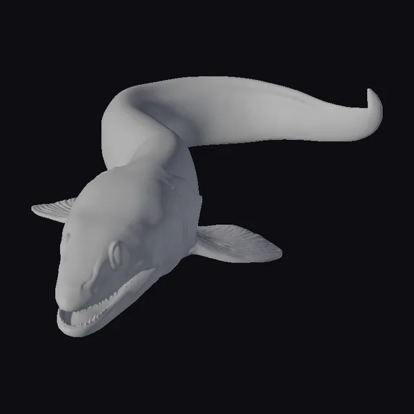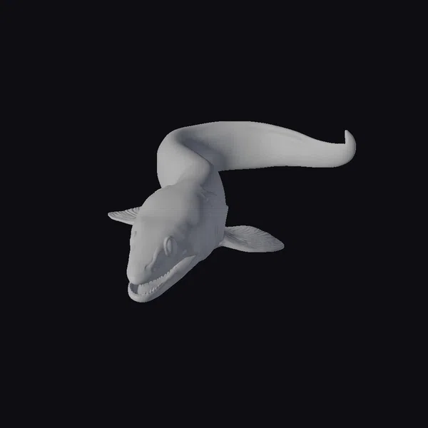 Pose yourself in the dark, mysterious depths of the ocean, where a glowing eel-like creature comes to life. This detailed model showcases a dark blue, almost black body with vibrant yellow spots scattered across its skin, emitting a soft, ethereal glow. The creature’s head is shaped like an eel’s, complete with sharp teeth and a slightly open mouth, as if poised to strike. Its body smoothly transitions into a long, curved tail, while two semi-transparent fins add to its aquatic appearance. Textures are smooth with subtle shading, bringing this bioluminescent creature to life. Ideal for use in games, animations, or virtual reality experiences that require a touch of fantasy and mystery.