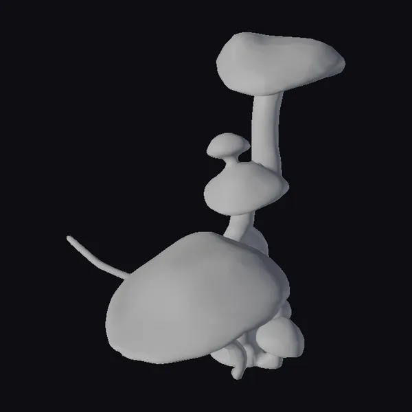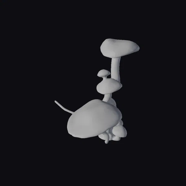Deep within an otherworldly forest, a cluster of glowing fungal growths rises from the ground, casting an eerie, soft light. This detailed 3D model showcases a variety of mushroom-like structures, each with a slimy, reflective surface that gradates from deep blues to radiant greens. The largest specimen towers above the rest, its cap a vibrant, glowing blue-green, while smaller growths cluster around the base, some appearing to emerge from the stem itself. The texture is smooth and wet, suggesting a perpetual layer of dew or a bioluminescent sheen. Ideal for use in games, animations, or virtual reality experiences, this model brings an instant touch of the alien and unknown to any fantastical environment. Designers can use it to create immersive, extraterrestrial landscapes that transport viewers to new worlds.