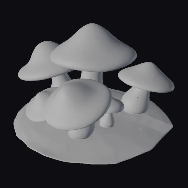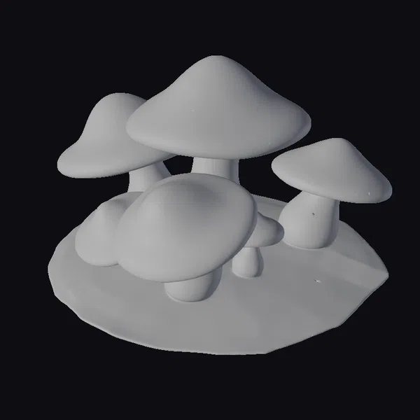 In a captivating display of color and light, this cluster of glowing mushrooms takes center stage. Each mushroom boasts a smooth, curved stem and cap, radiating a soft, luminescent glow that shifts through a kaleidoscope of colors. The iridescent sheen on their surfaces creates a mesmerizing effect, as if they’re infused with an otherworldly essence. The dark, rounded base they grow from adds a sense of grounding to the fantastical scene. These mushrooms are perfect for adding a touch of magic to games, 3D prints, VR/AR experiences, animations, or designs that require a whimsical, dreamy feel.