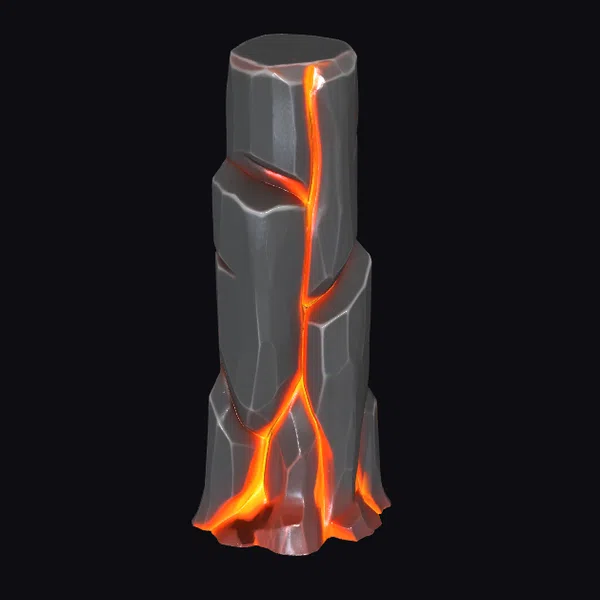 Crafted with meticulous attention to detail, this 3D model of a lava rock formation captures the intense beauty of volcanic activity. The model’s dark, stone-like surface is fractured and rugged, with deep cracks and fissures that appear to be filled with a glowing, molten lava. The lava’s vibrant orange and yellow hues pulse with an inner light, as if heated from within. The formation’s base is wider and more irregular, suggesting it has cooled and solidified in a pool of lava. Ideal for use in games, animations, or 3D environments where a touch of volcanic drama is needed, this model brings a dynamic, realistic element to any scene. Its detailed textures and lighting effects make it suitable for close-up shots or as a background element.