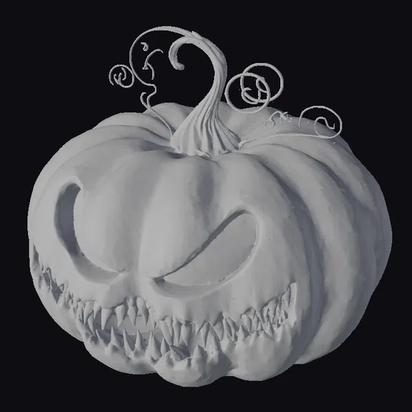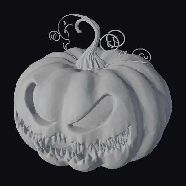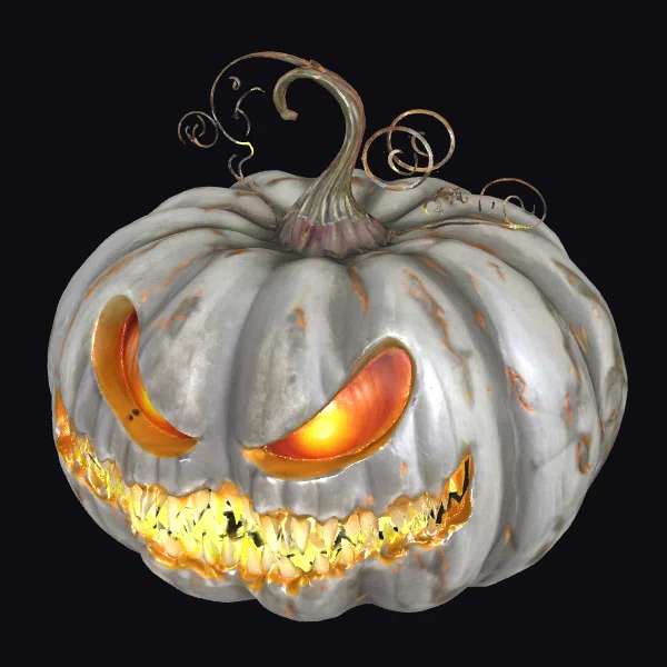 Perched atop a twisted, curved stem, this metal pumpkin exudes an otherworldly aura. The gray metallic surface exhibits a weathered appearance, with orange glowing eyes and mouth carved into a menacing grin. Delicate, swirling vines burst forth from the top, lending an air of mystique. The model’s intricate details and eerie lighting evoke a sense of foreboding, perfect for conjuring an unsettling atmosphere in games, animations, or 3D designs. Its unique blend of industrial and organic elements makes it an eye-catching addition to any project.