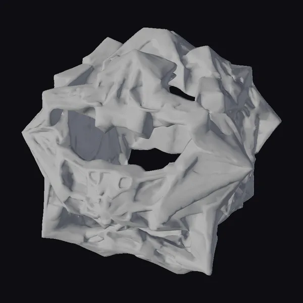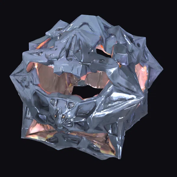 This highly detailed, sci-fi model presents a captivating, abstract metallic object that appears to be a chaotic, glowing entity. The structure’s surface is a mesmerizing blend of dark metallic colors and vibrant orange hues, suggesting an otherworldly energy emanating from within. The object’s irregular, almost organic shape is characterized by numerous facets and a complex interplay of light and shadow, creating a sense of depth and dimensionality. As an emissive model, it is perfect for projects requiring a unique, futuristic prop or decorative piece. Its abstract nature makes it suitable for various applications, including games, animations, VR/AR experiences, and design projects. The model’s high level of detail and realistic textures ensure that it will be a compelling addition to any sci-fi or futuristic scene.