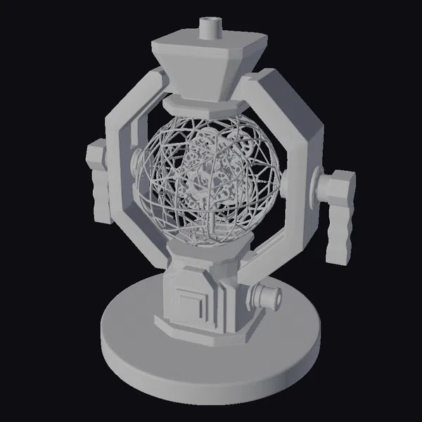 Perched on a sleek black base, the Glowing Metallic Orb Device presents a complex assembly of dark metallic components, housing a vibrant teal orb that seems to pulse with an otherworldly energy. The orb itself is a latticework of interconnected lines and shapes, giving it a dynamic, almost alive appearance. The device’s frame is adorned with bolts, panels, and other industrial details, suggesting a functional yet highly advanced piece of technology. Ideal for use in games, 3D printing, VR/AR experiences, animation, and design projects, this model brings a touch of sci-fi sophistication to any project. Its detailed textures, precise lighting, and balanced proportions make it a versatile asset for creators.