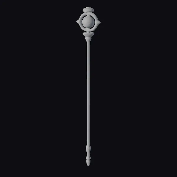 Perched atop a slender metallic pole, the glowing staff top is a marvel of intricate design. The staff’s upper section features a radiant orange orb encased in a delicate, star-like metal framework. The pole itself boasts ornate details, with subtle swellings and tapering sections that suggest both elegance and durability. When rendered, the soft glow of the staff’s core casts a warm light on surrounding surfaces, creating an inviting ambiance. Ideal for use in games, 3D print projects, VR/AR experiences, animations, or design visualizations, this model brings a touch of magic to any scene.