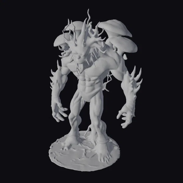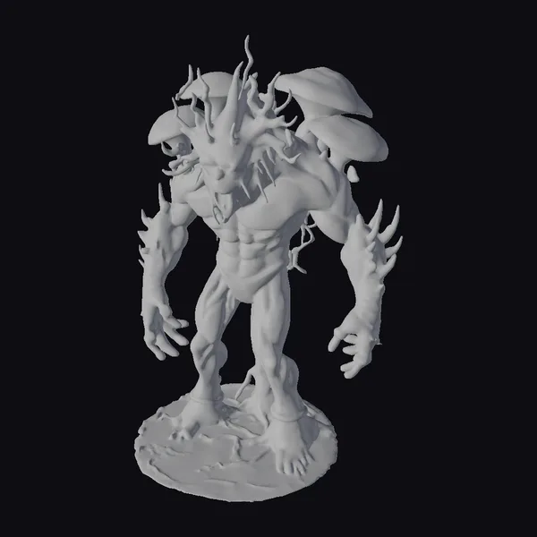 Standing tall with a muscular build, this creature boasts a humanoid form with tree-like features, including bark-like skin and roots that seem to twist and turn like living vines. Glowing mushrooms sprout from its back and shoulders, casting an ethereal light on the surroundings. The creature’s face is a mix of human and tree, with a pointed, branch-like protrusion on its forehead and eyes that seem to glow with an inner light. Its voice, a gentle whisper, carries on the wind, spreading a sense of unease and foreboding. This model is perfect for games, animation, and design projects that require a unique, mythical creature. Its detailed textures, realistic lighting, and dynamic pose make it a standout addition to any fantasy setting.