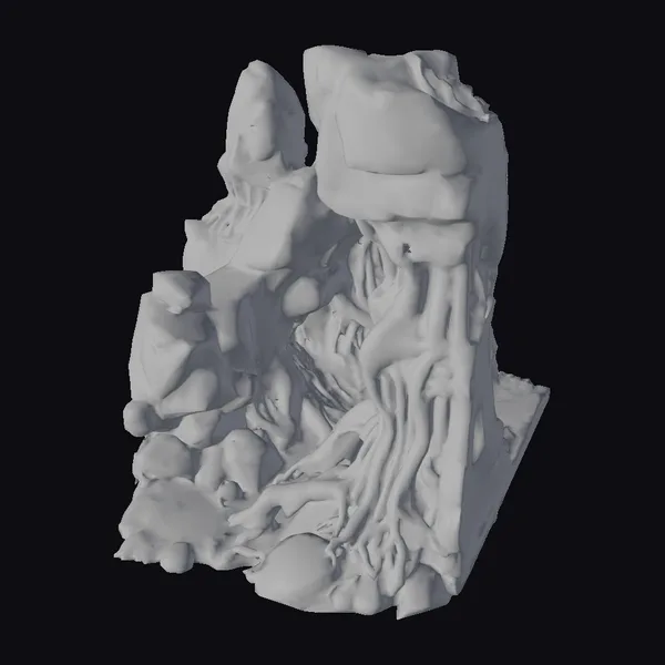 Bathed in a kaleidoscope of colors, this radiant rock formation glows with an otherworldly light. The opal-like structure appears to pulse with an inner fire, as if infused with a mystical energy. With its intricate textures and swirling patterns, this model is a masterpiece of realistic design.