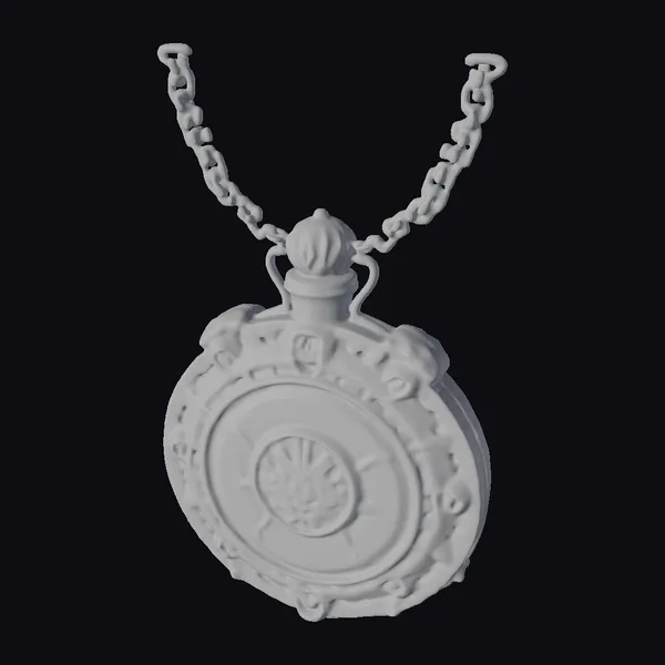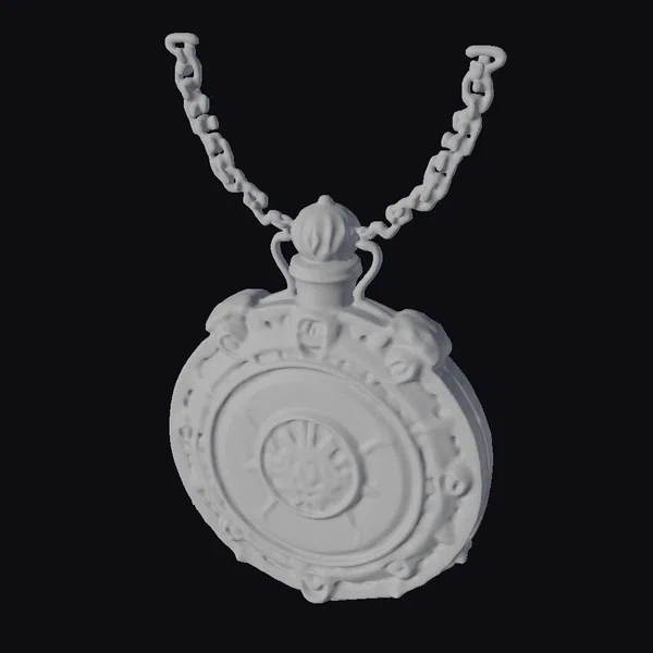 Crafted with meticulous attention to detail, this pendant necklace boasts a richly textured, metallic exterior with a worn, aged appearance. The chain, composed of interlocking loops, adds a sense of organic movement to the piece. At its focal point, a glowing orange and yellow orb pulsates with an ethereal light, surrounded by a gear-like mechanism that suggests advanced technology. The pendant’s industrial aesthetic, combined with its luminescent core, makes it an eye-catching accessory for those drawn to sci-fi and futuristic fashion. Ideal for use in games, 3D printing, VR/AR experiences, animation, and design projects seeking a touch of high-tech mystique.
