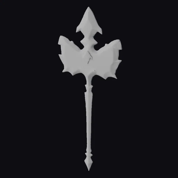 The Glowing Purple Void Scepter stands tall with its pointed tip and elaborate head, showcasing a mesmerizing blend of purple and dark hues. The handle, wrapped in metallic details, provides a sturdy base for the scepter’s glowing head, which features a central gemstone surrounded by intricate designs. Jagged edges and pointed protrusions add to its fantastical appearance. This scepter is perfect for enhancing scenes in games, animations, or 3D designs with its unique blend of fantasy and mysticism. Its detailed texture and balanced proportions make it a compelling addition to any project.