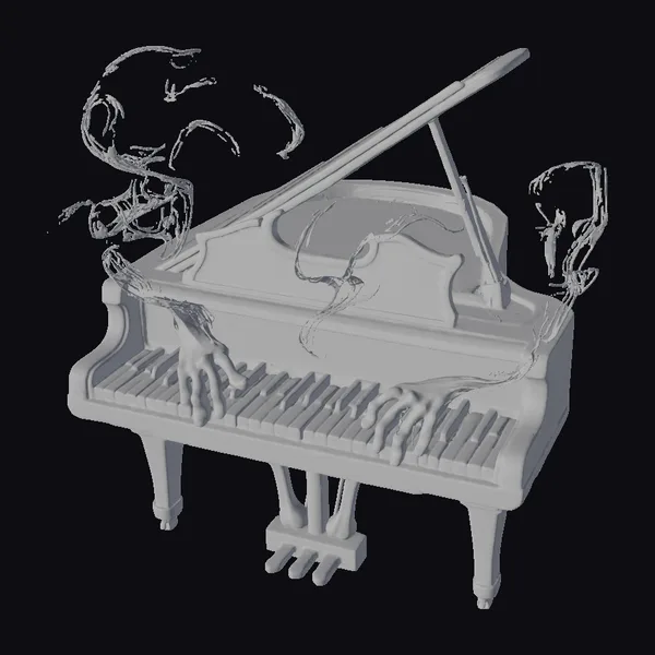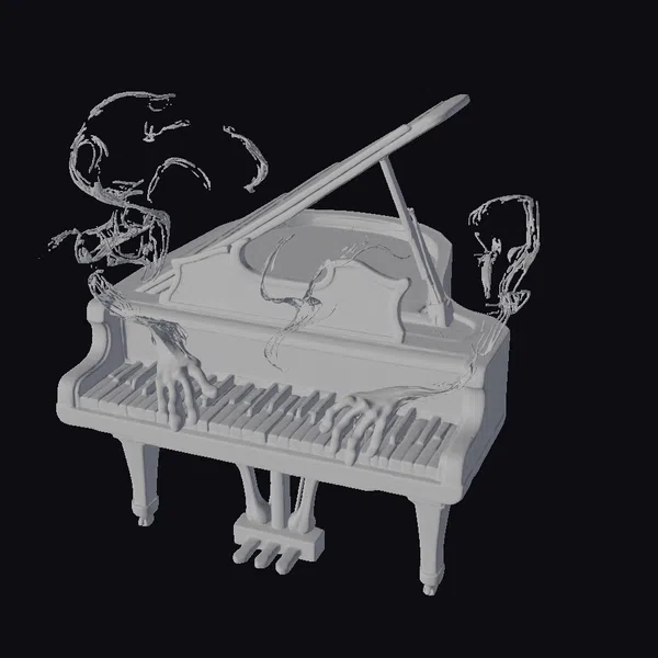 In a mesmerizing blend of reality and the supernatural, a grand piano stands with its wing-shaped lid open, revealing an interior that seems to absorb and reflect light like a dark, polished stone. The keys, uniquely made from bone, add an eerie elegance to the instrument. A soft, ethereal glow emanates from within, casting an otherworldly light on the surroundings. Ghostly hands seem to emerge from the piano, their fingers poised over the keys as if in the act of playing. Swirling around the piano are wisps of a water-like mist, adding to the mystical ambiance. This 3D model captures every detail, from the texture of the bone keys to the subtle play of light on the piano’s surface. Ideal for projects that require a touch of the fantastical, such as games, animations, or virtual reality experiences.